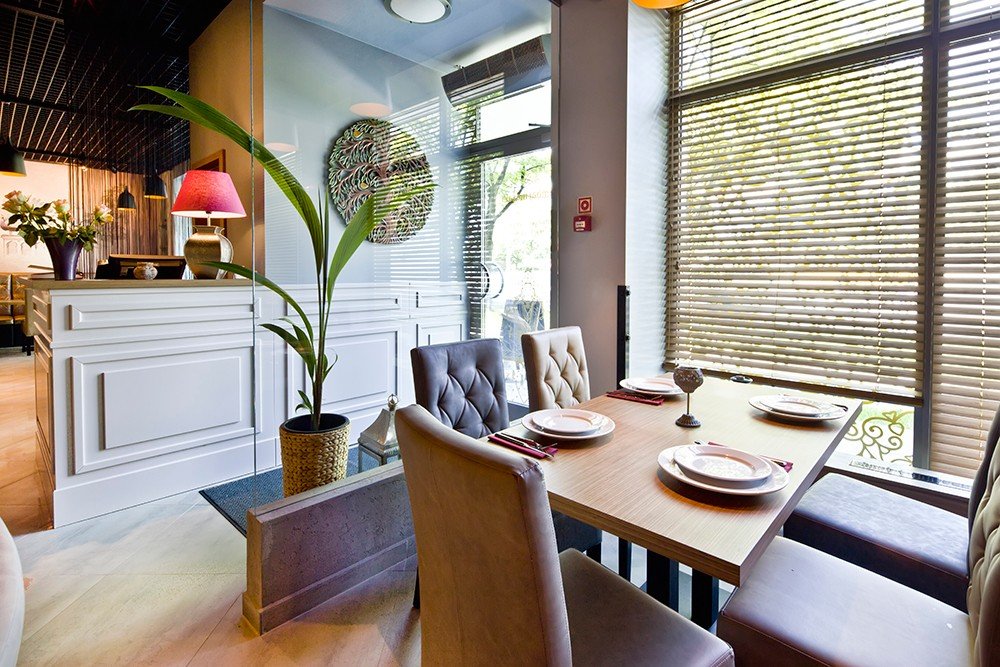Dla Naszych Gości stworzyliśmy restaurację, która łączy nowoczesny, przestronny wystrój z elementami odnoszącymi się do kultury Indii.