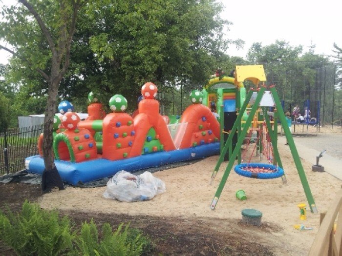 bawialnię edukacyjną z podłogą interaktywną, zewnętrzny plac zabaw z dmuchańcami,