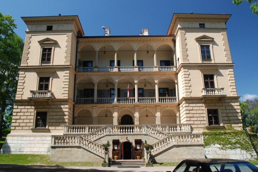 W latach 1533 – 1540 Ludwik Jost Decjusz – sekretarz króla Zygmunta I Starego budując letnią rezydencję założył ogród pałacowy wg projektu Jana Ciniego. W parku znajduje się stanowisko Śniedka zwisłego (Ornithogalum nutans) objętego ochroną gatunkową. Natomiast w części zachodniej parku zlokalizowana jest galeria rzeźby i malarstwa Bronisława Chromego.